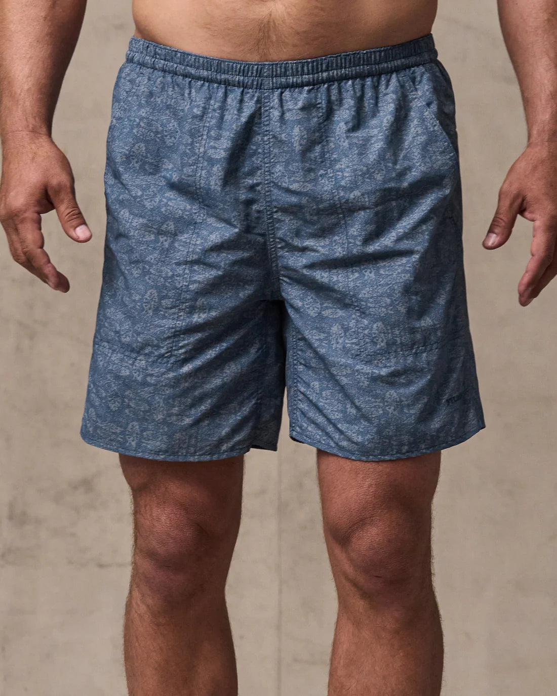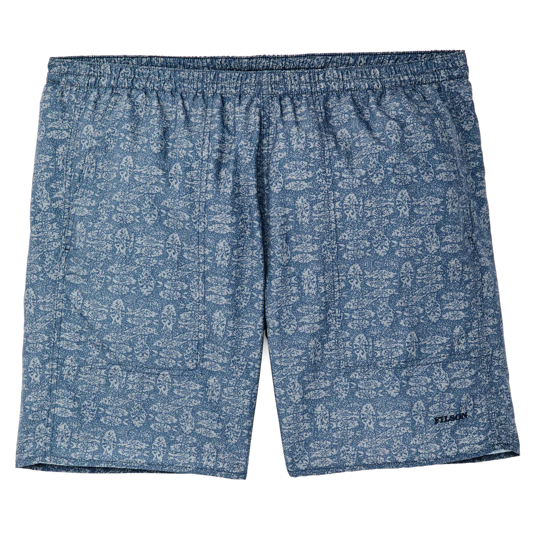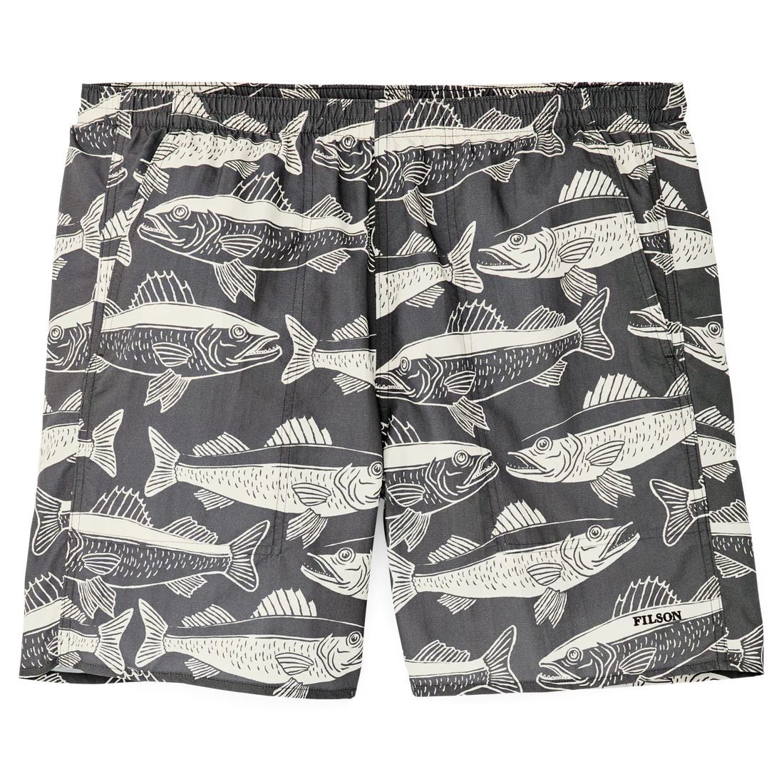 These trunks are made for action in and out of the water, whether it's mountain streams, alpine lakes, or crashing surf. The 3.5-oz. ripstop-nylon fabric is 100% recycled, dries quickly, and is treated to improve wicking performance. The front pockets are mesh-lined for instant drainage, and the single rear pocket is covered by a snapped flap. The elastic waistband with drawcord provides security without the need for a belt.