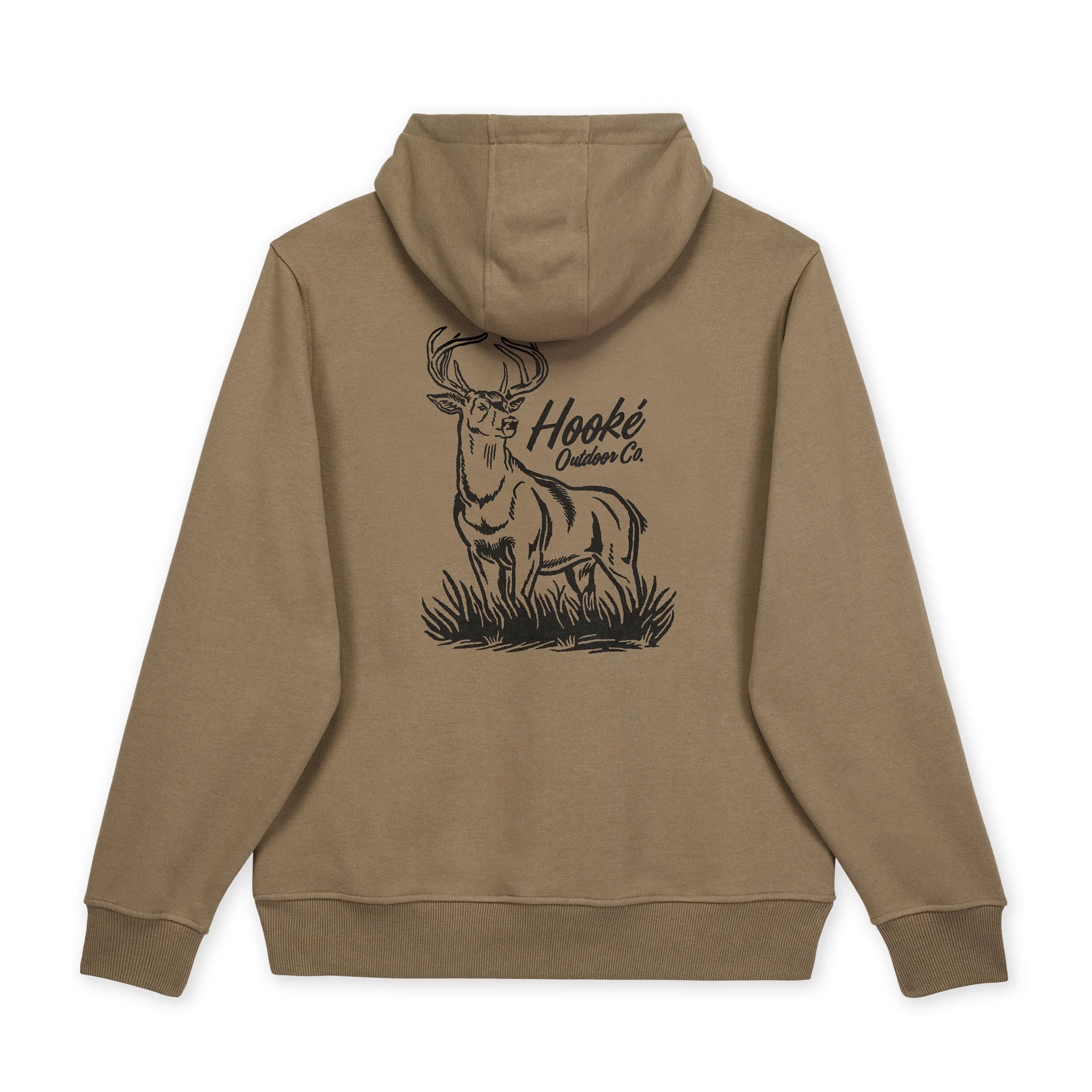 The Staring Deer Hoodie is crafted from a heavyweight 380 g/m² blend of organic cotton and recycled polyester, offering warmth and comfort with a steady, structured feel. A classic fit, designed to layer through colder months or stand alone by the fire.