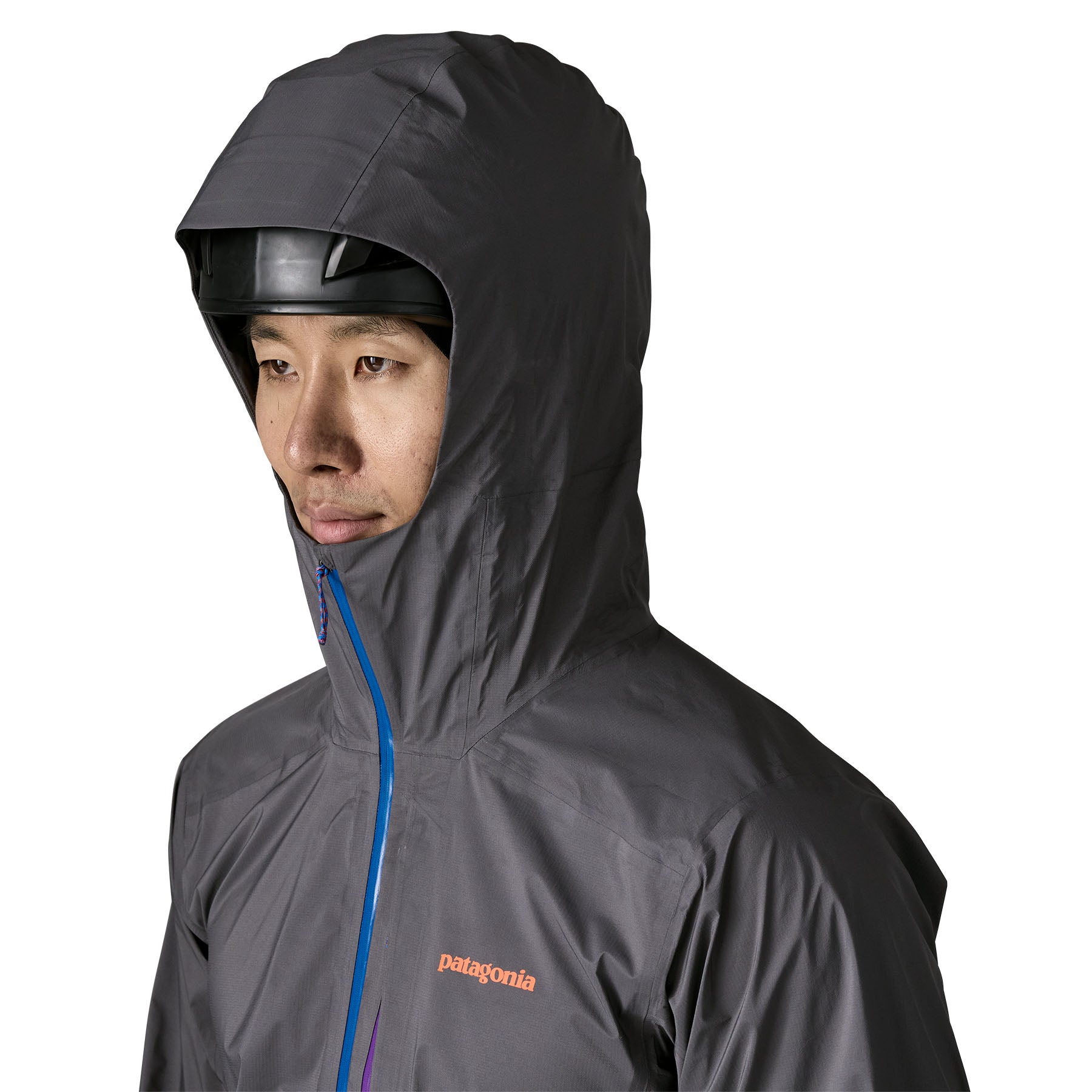 - Patterned for wide shoulders with a slight taper through the torso to lie under a harness or a backpack without excess fabric; a deep, waterproof, two-way, center-front zipper allows venting and a zipper garage provides next-to-chin comfort