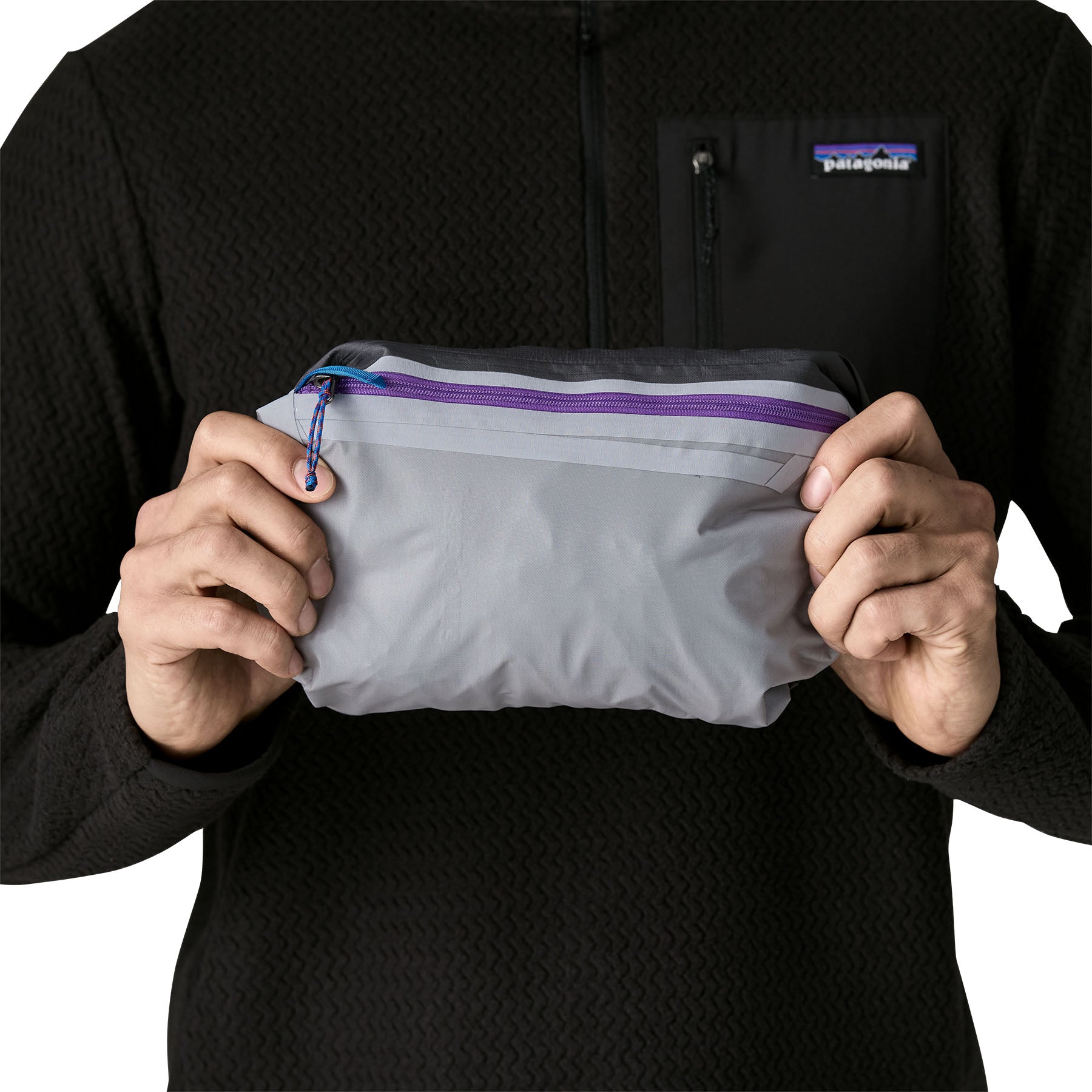 - Secure, zippered waterproof chest pocket with a zipper garage stashes essentials, and the roomy pocket bag allows for easy self-stuffing, with a clip-in carabiner loop for on-route access