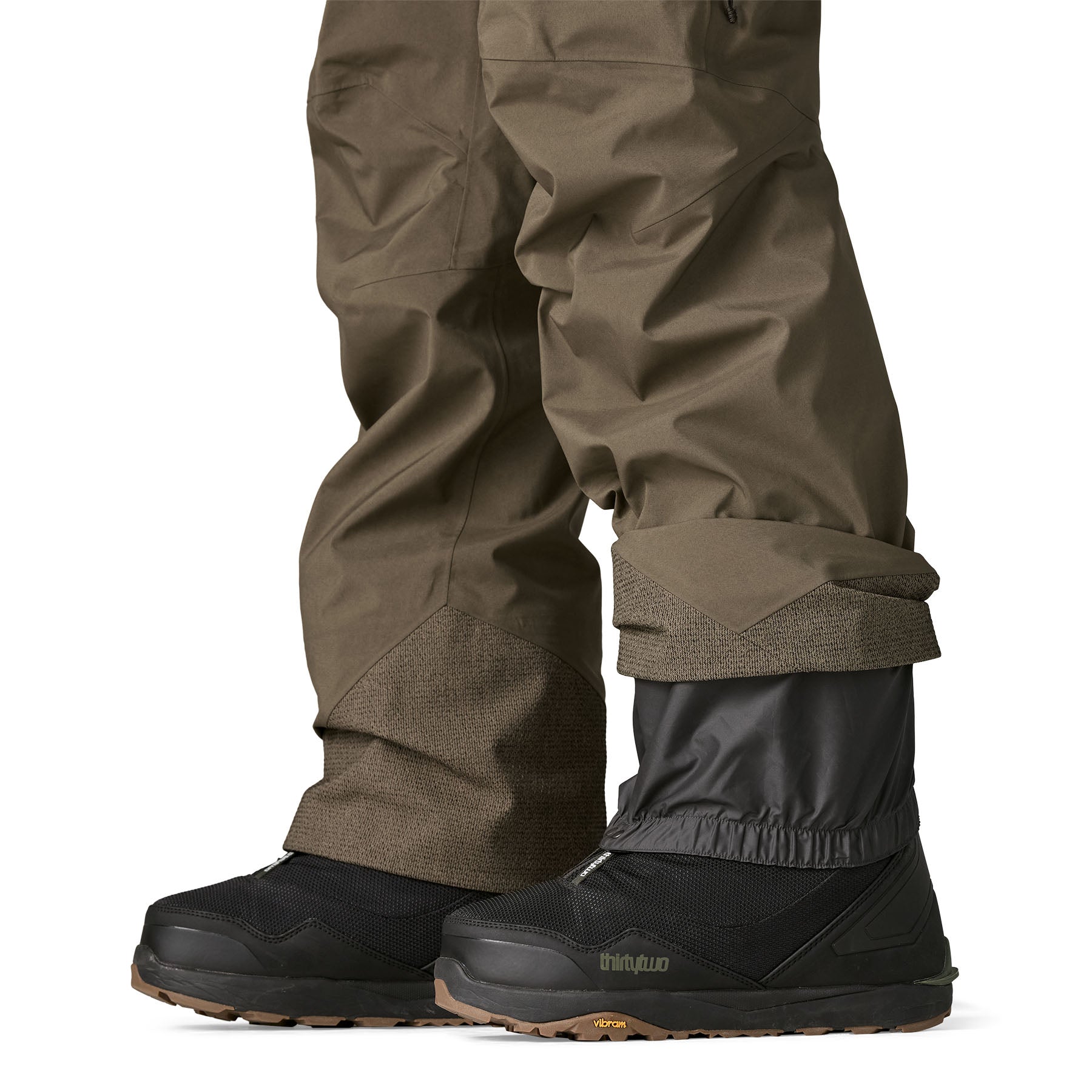 - Gaiters seal out snow, and tough scuff guards protect the inside of legs and the hem; inseam is 32"