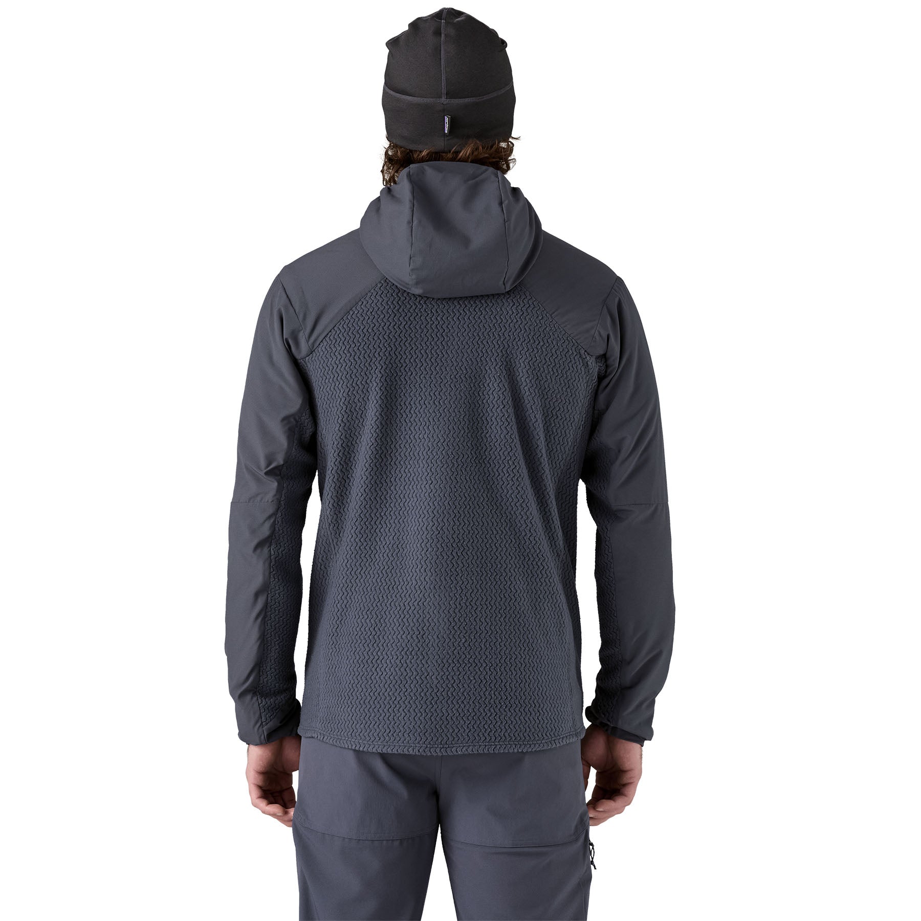 • R1® Air fleece panels on the upper and lower back, sides and under the arms add ventilation while wearing a pack, and are made of 100% recycled polyester hollow-core yarns in a unique zigzag pattern that wicks moisture, dries fast and is highly breathable
