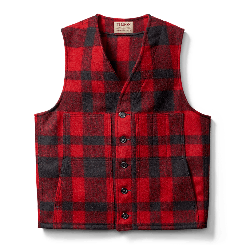 Our Mackinaw Wool Vest, universally trusted by ranchers, loggers and all manner of sportsmen, has proven itself to be as versatile, functional and practical as any product we’ve ever manufactured. This vest's all-conditions performance has made it cornerstone in the Filson product line for more than fifty years.