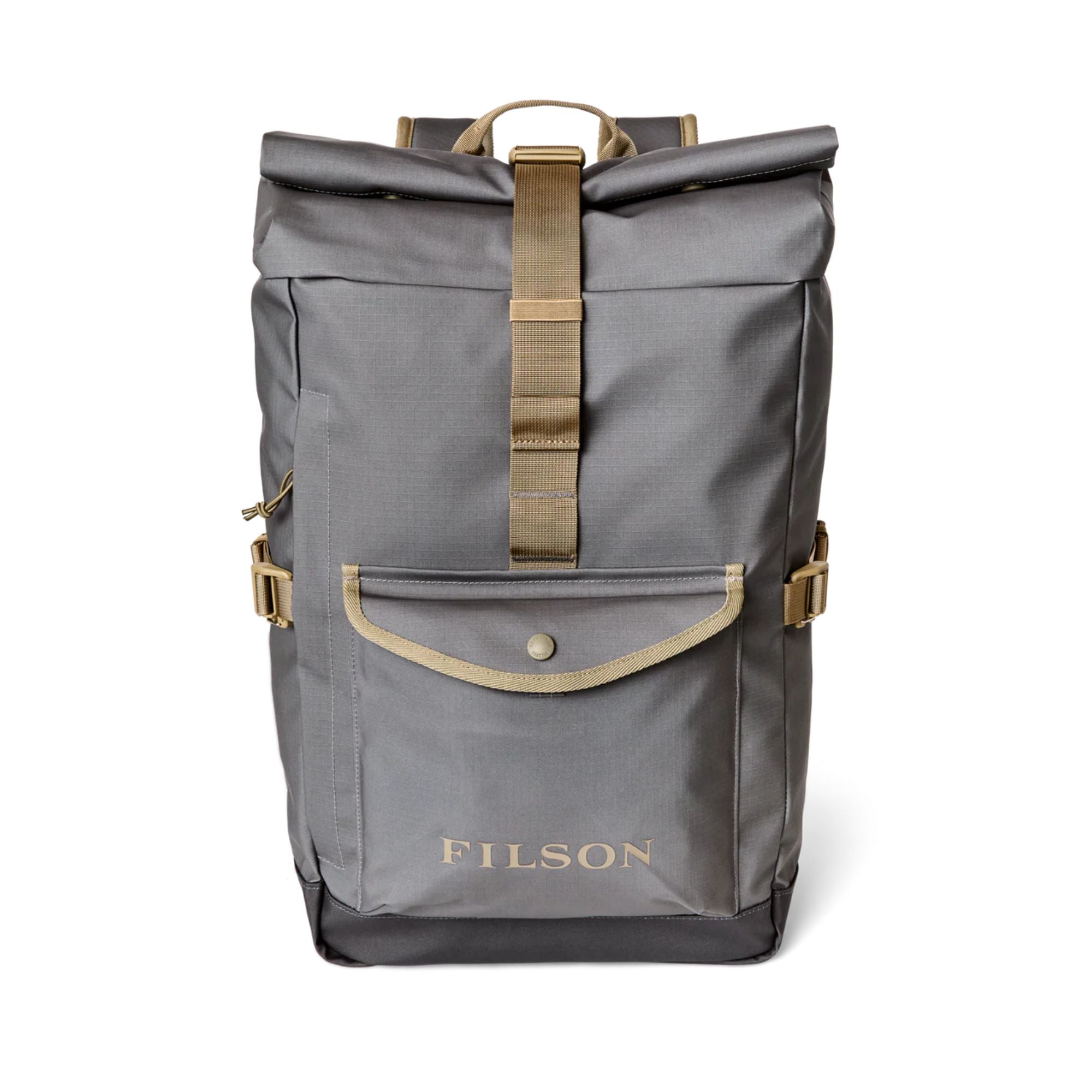 - Buckling compression straps and roll-top closure