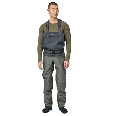 Engineered for fit, mobility and durability, our heaviest weight, most fully featured waders have an adjustable, quick-release suspender system for conversion from chest to waist height. Details include an interior waterproof pocket, a reach-through handwarmer pocket with zip flaps, removable kneepads and anatomical booties.